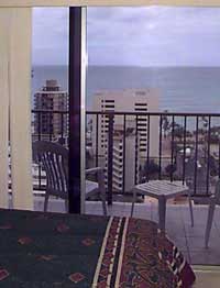 クハイツをご案内します。 2つのラナイからの景色は最高です! 場所はクヒオ通りの東側に位置し、クヒオビーチからハイアットリージェンシーを通って、ほぼ正面のと ころにあります。 |